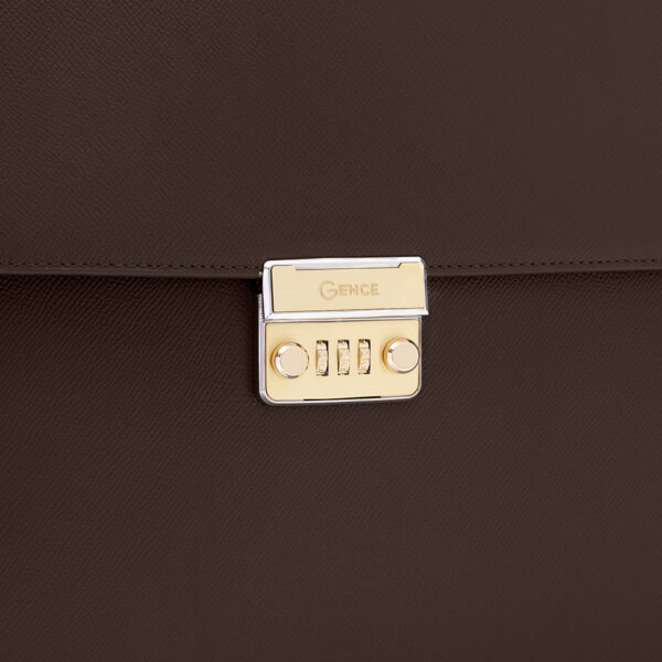 Cặp nam Gence khóa số da bò Epsom cao cấp CTS26 Nâu